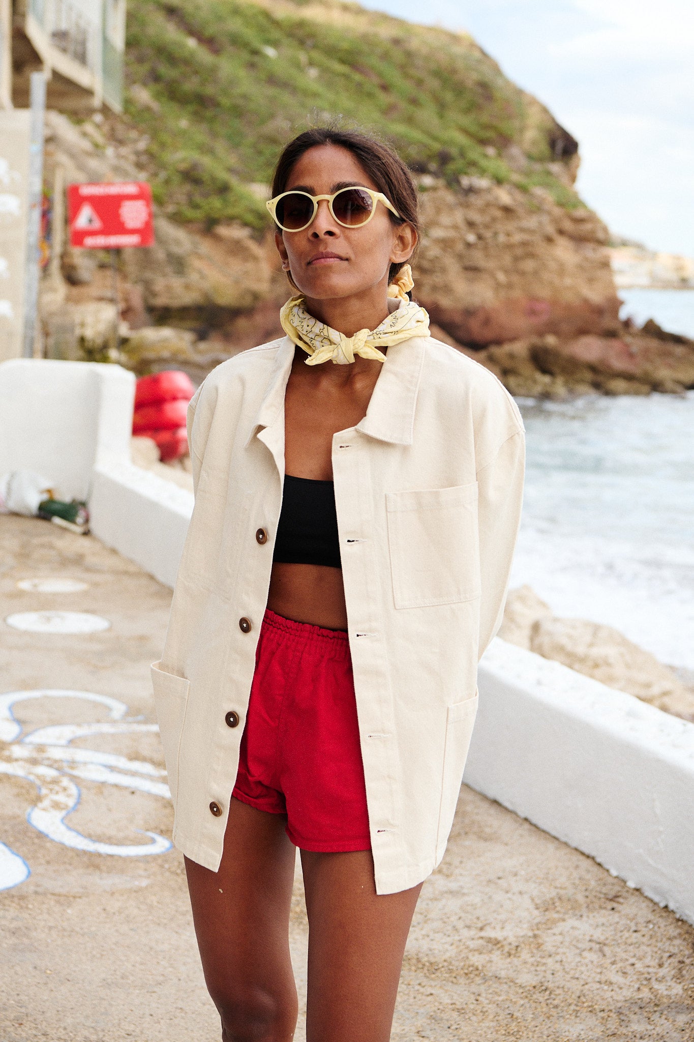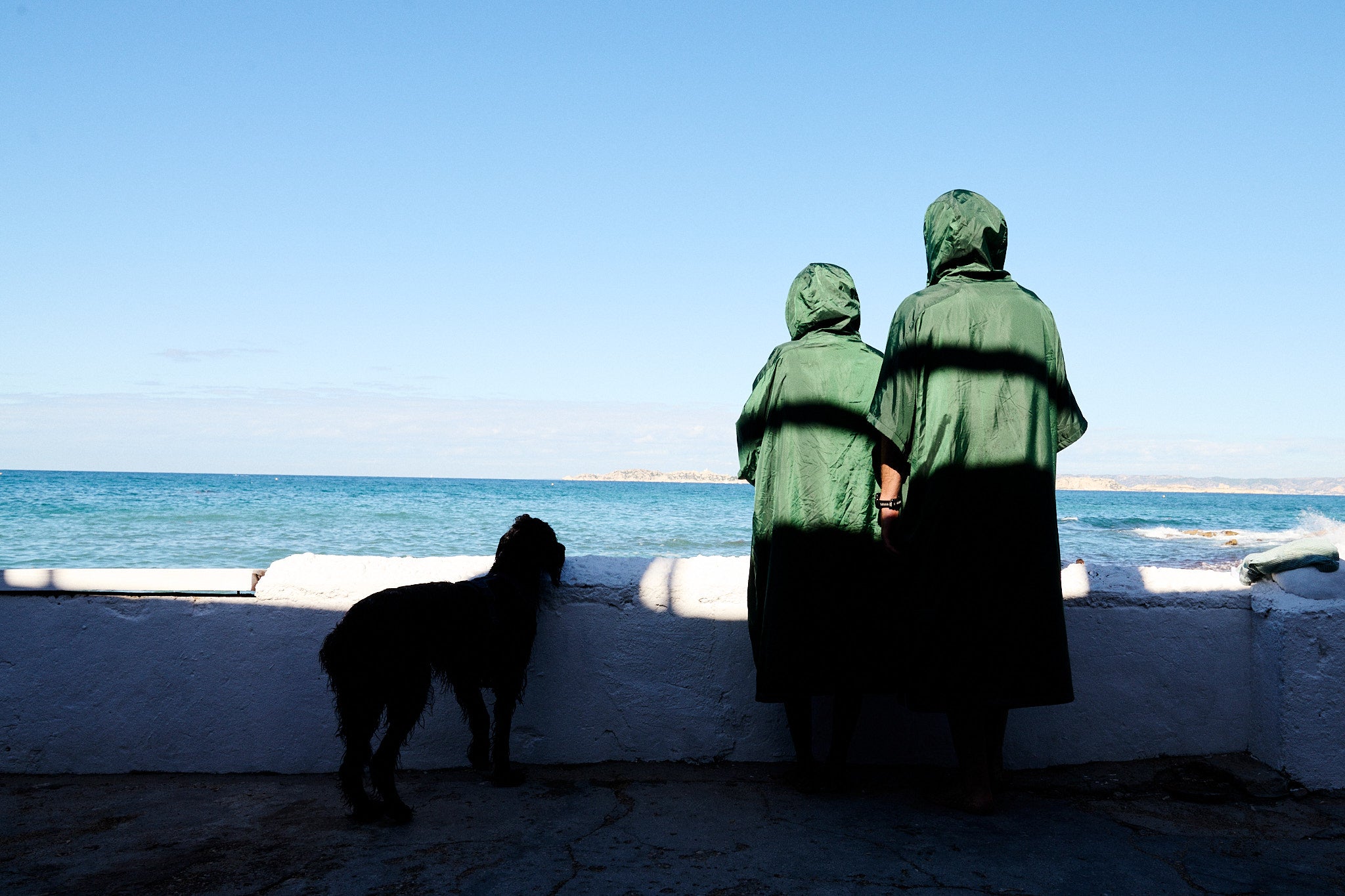 Petits cabanons de part et d'autre de cette plage urbaine : spot génial pour shooter notre drop 2. Toujours à Marseille.