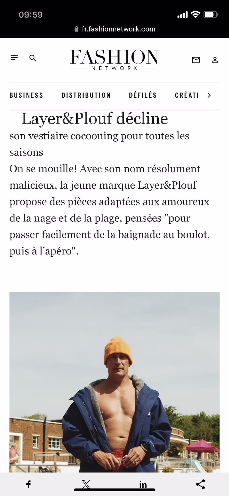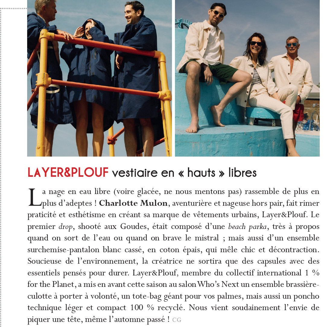Avec son nom résolument malicieux, la jeune marque Layer&Plouf propose des pièces adaptées aux amoureux de la nage et de la plage, pensées "pour passer facilement de la baignade au boulot, puis à l’apéro".